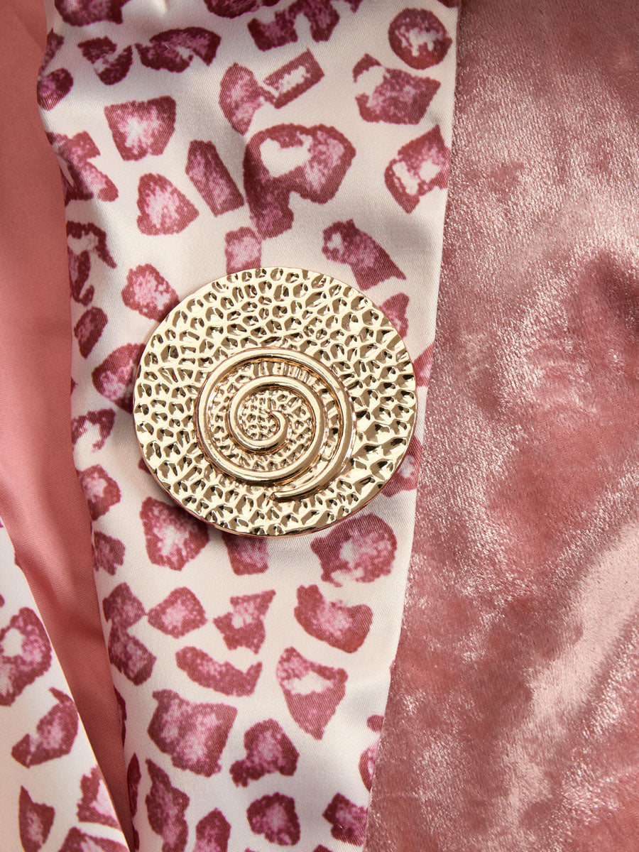 Lapel Contrast Leopard Print Velvet Blazer